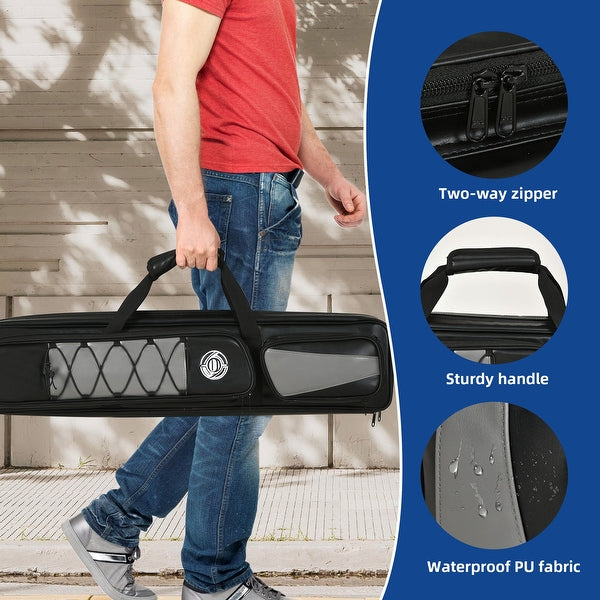 Durable billiard stick carrying bag with backpack straps, holds 4 butts and 4 shafts. Perfect for easy transport and protection of your cues