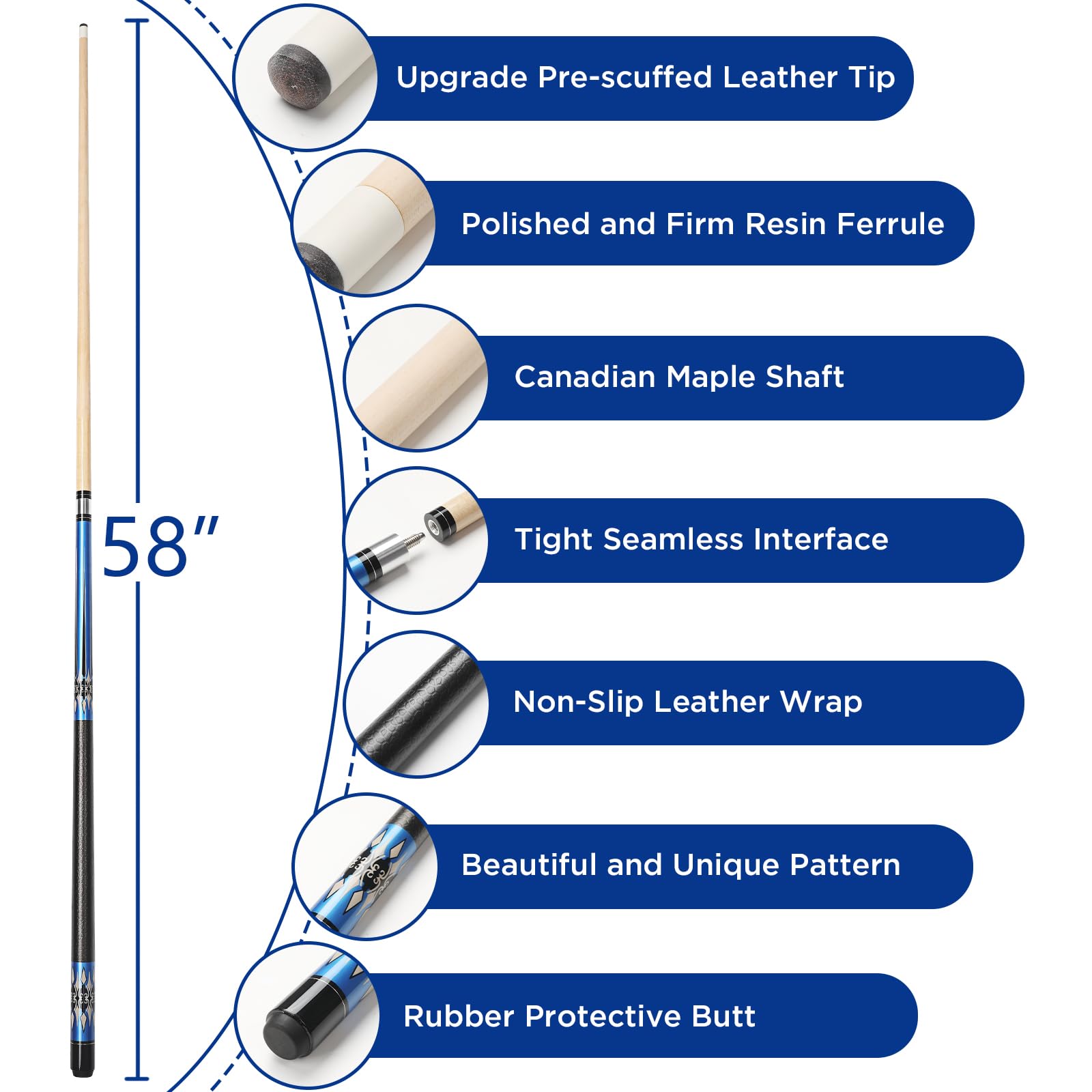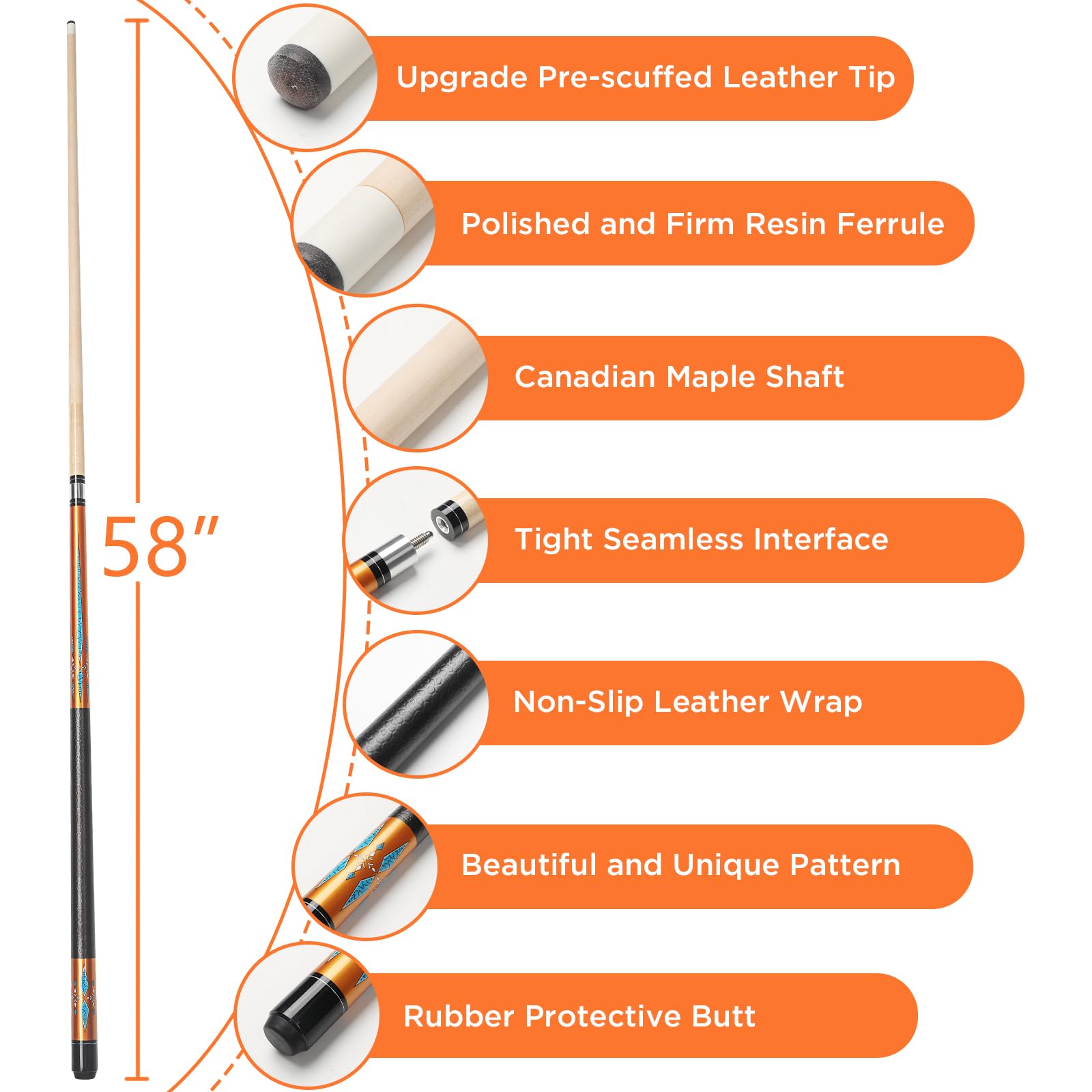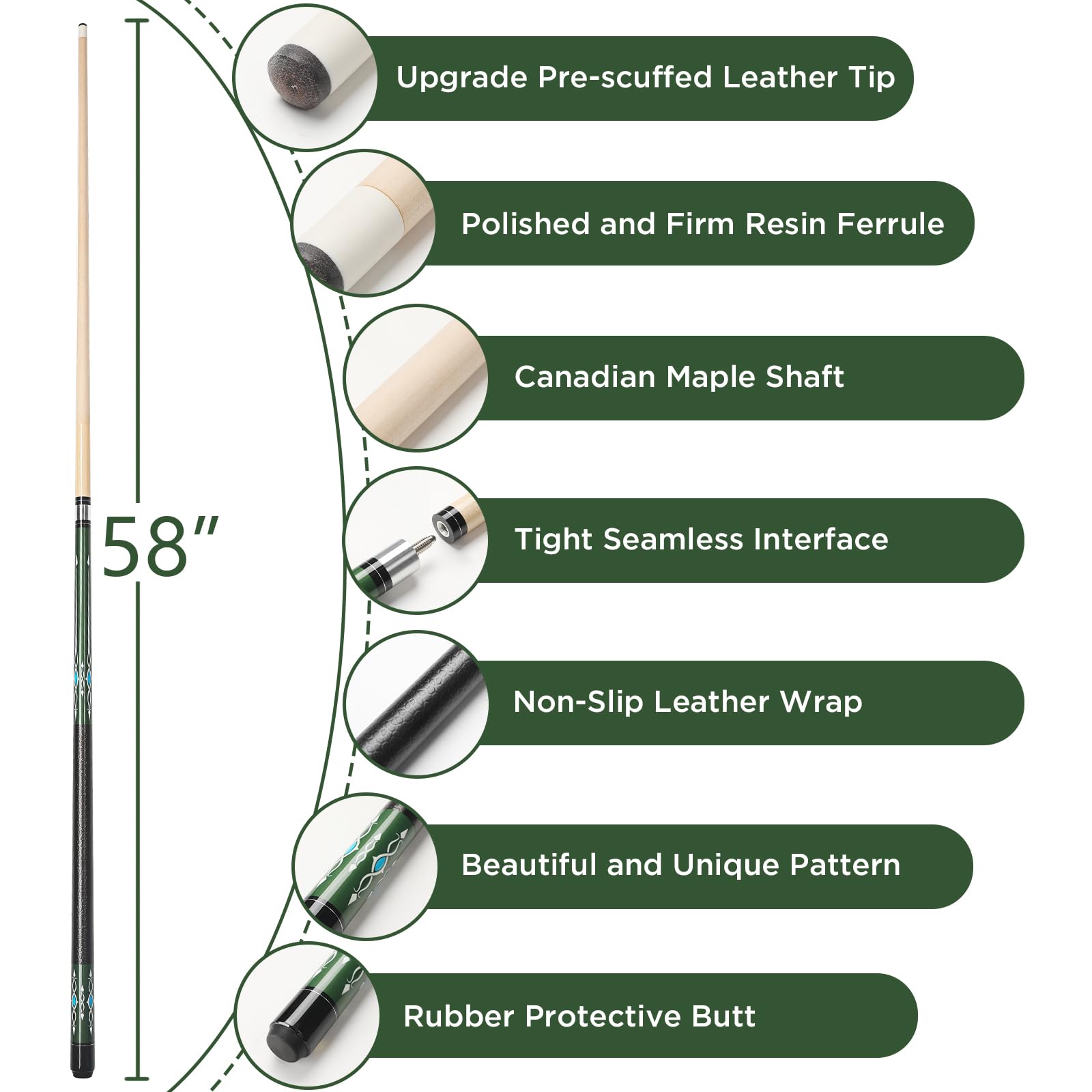 - 🎱【Premium Maple Wood】Made from selected high-density canada maple wood, superior strength and warp resistance. Perfectly straight shaft ensures consistent, accurate shots every time.