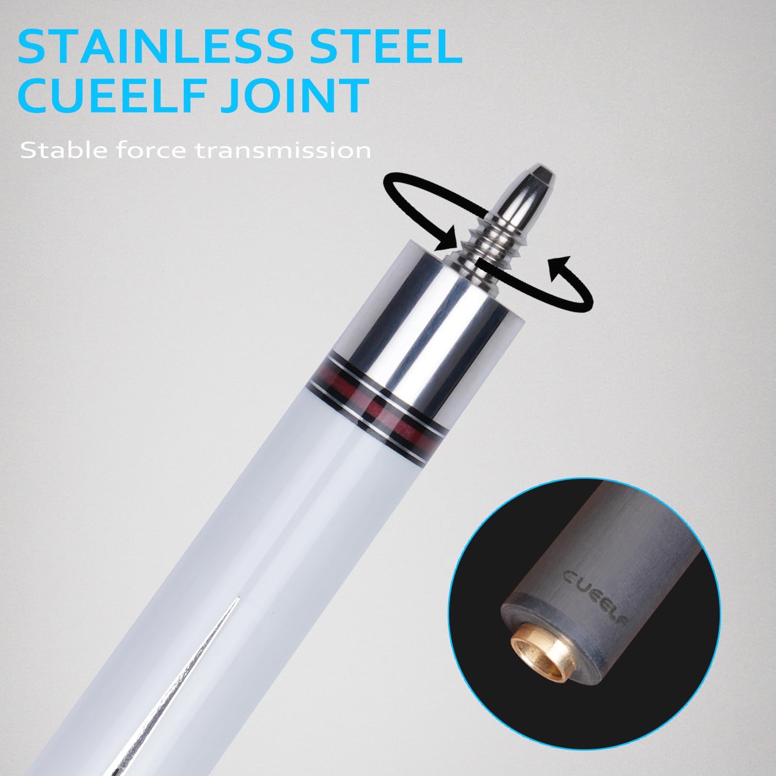 - 【Cue joint】The billiard cue sticks are stainless steel CUEELF cue joint and not easy to bend. The cue connection is tighter, and the force transmission is more transparent. It is solid and equipped with a joint protector.