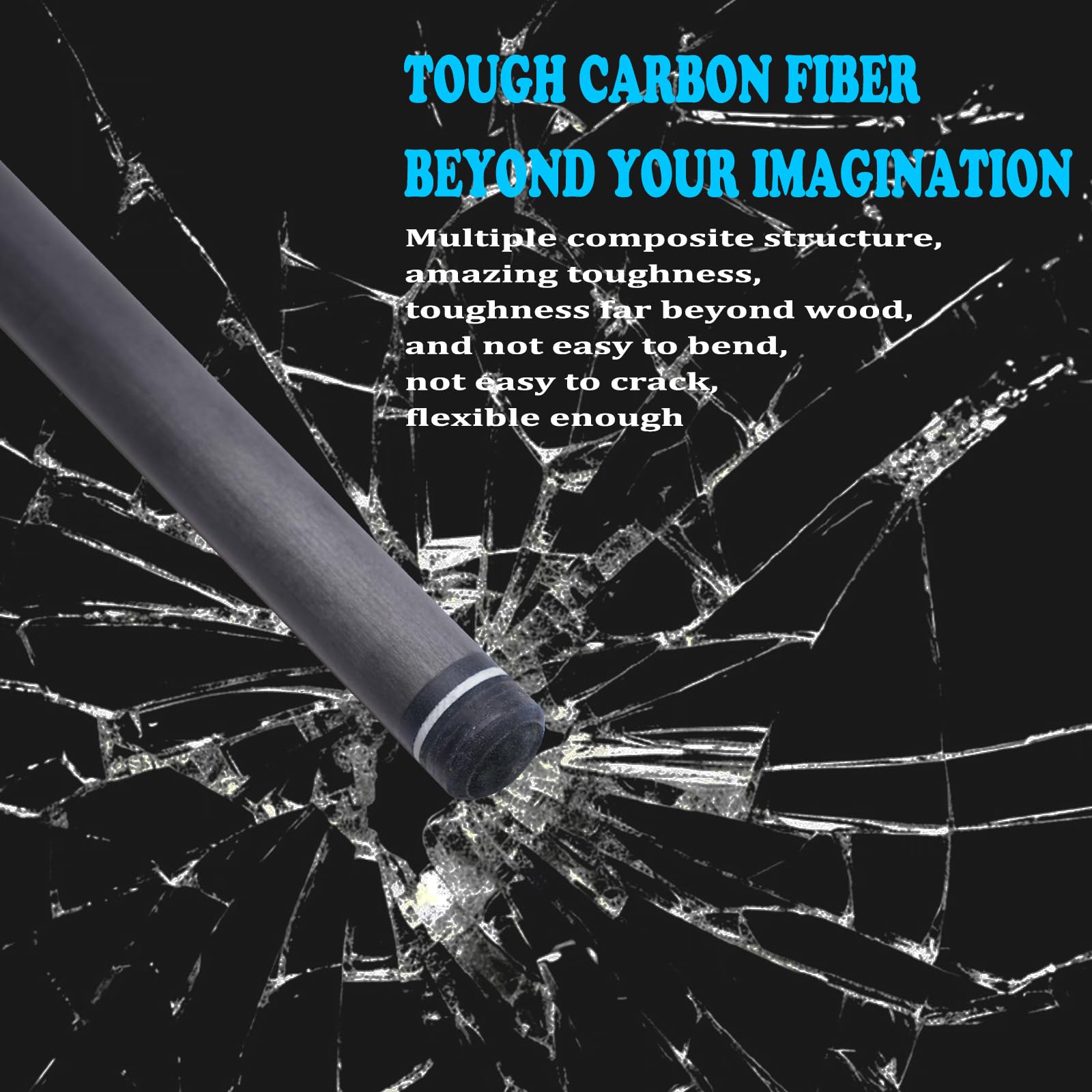 - 【BLACK TECHNOLOGY CARBON SHAFT】The carbon fiber shaft hardness is high, strong and not deformed, shock-absorbing rubber back plug protects the cue from bumping,with carbon fiber as raw materials, the forelimb elasticity and toughness are very excellent, and the feeling is transparent, and the instant explosion is unstoppable.