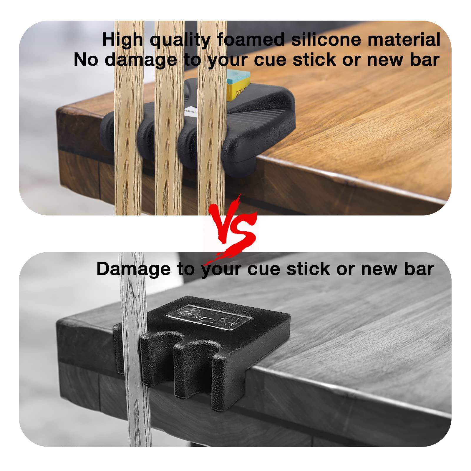 - 【Durable Good Material】EPOGG pool cue holder is made of high quality foamed silicone which is environmentally friendly and durable, no damage to your cue stick or new bar. You can use the cue holder for a long time.