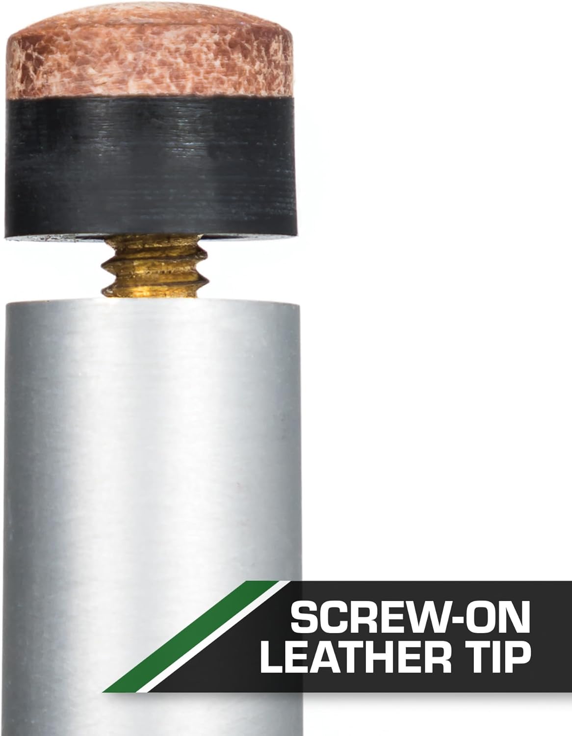 - PREMIUM LEATHER TIP: This 2 piece billiard cue features a premium leather tip that is designed to provide maximum control and striking power to make any shot on the table and even add a little “English”. The premium leather reduces miss-hits and maintains its shape and texture game after game, but can be unscrewed and replaced as needed over time.