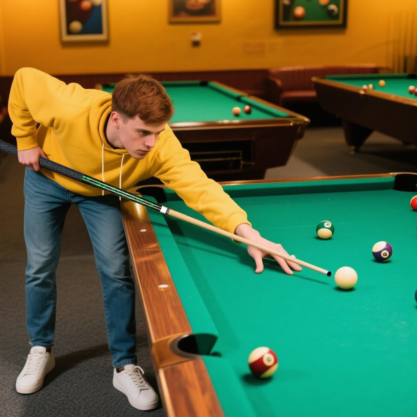 - Comfortable Pool Stick: unique hand-made varnish coating, effectively prevents the wood of the pool cue from being damp and bent; Irish linen thread grip, non-slip and sweat-absorbent, comfortable to the touch, reduces deflection, and improves accuracy.