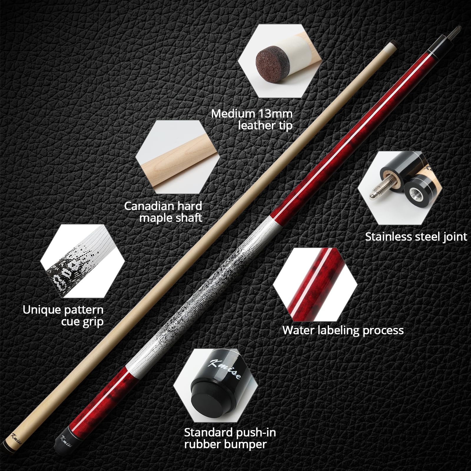 Kmise Professional Low-Deflection Pool Cue Stick, 58'' Canadian Hard Maple Wood Billiard Cue, 13mm Leather Tip, 3D Anti-Slip Grip, Precision Control for Adults/Beginners/Pros