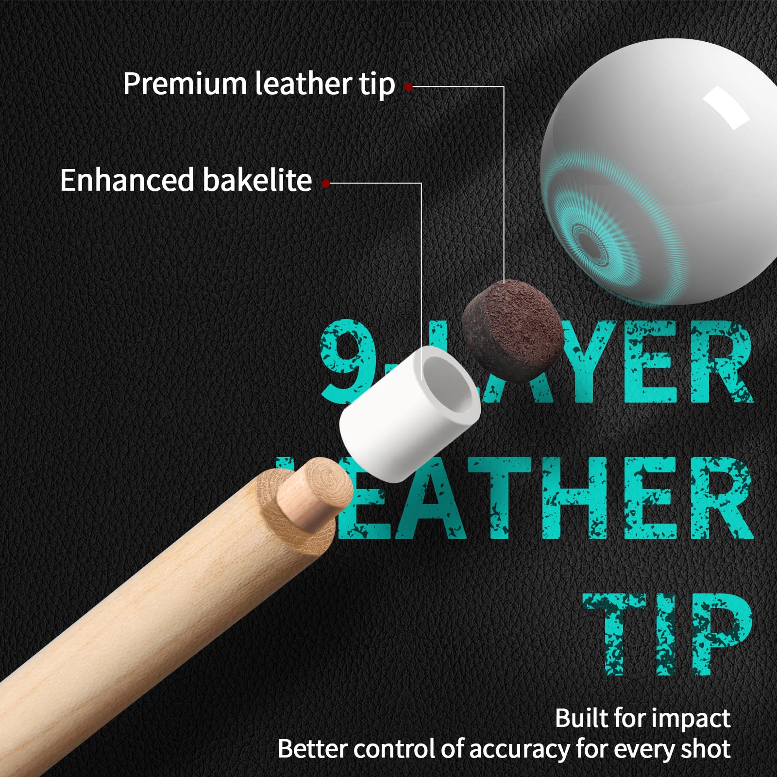 - Advanced 3D Lizard Grip: 0.1mm precision texture boosts friction by 40% – no slip during 25mph breaks. Maximize control and power with these pool sticks