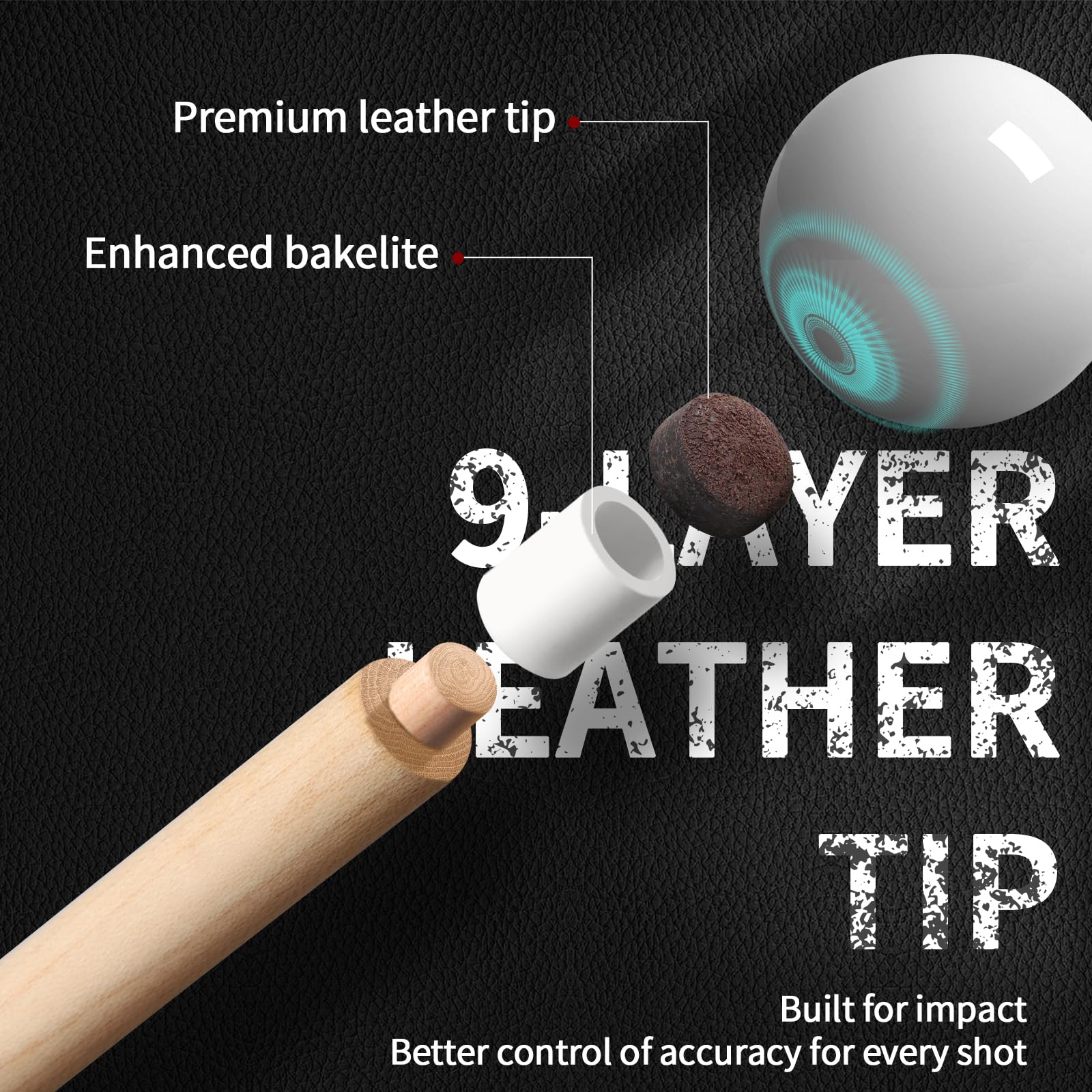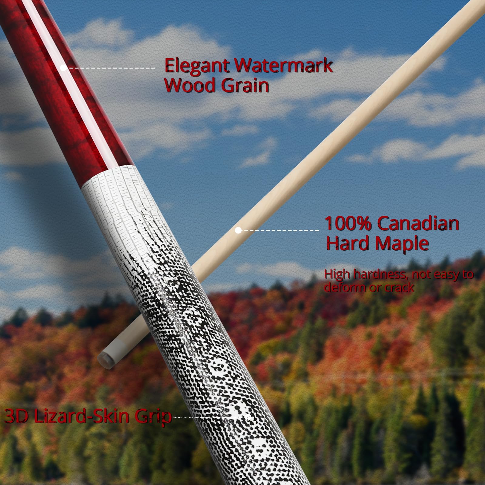- 9-Coat Wood Grain Butt: 9-layer gloss finish enhances natural timber texture while resisting scratches/sweat. Experience elegance in every Billiard Cue