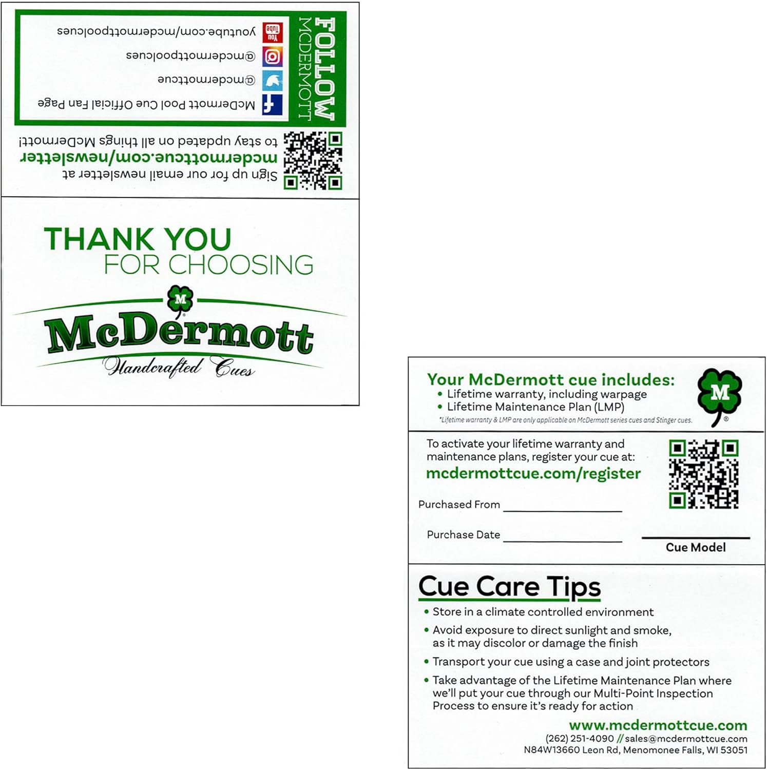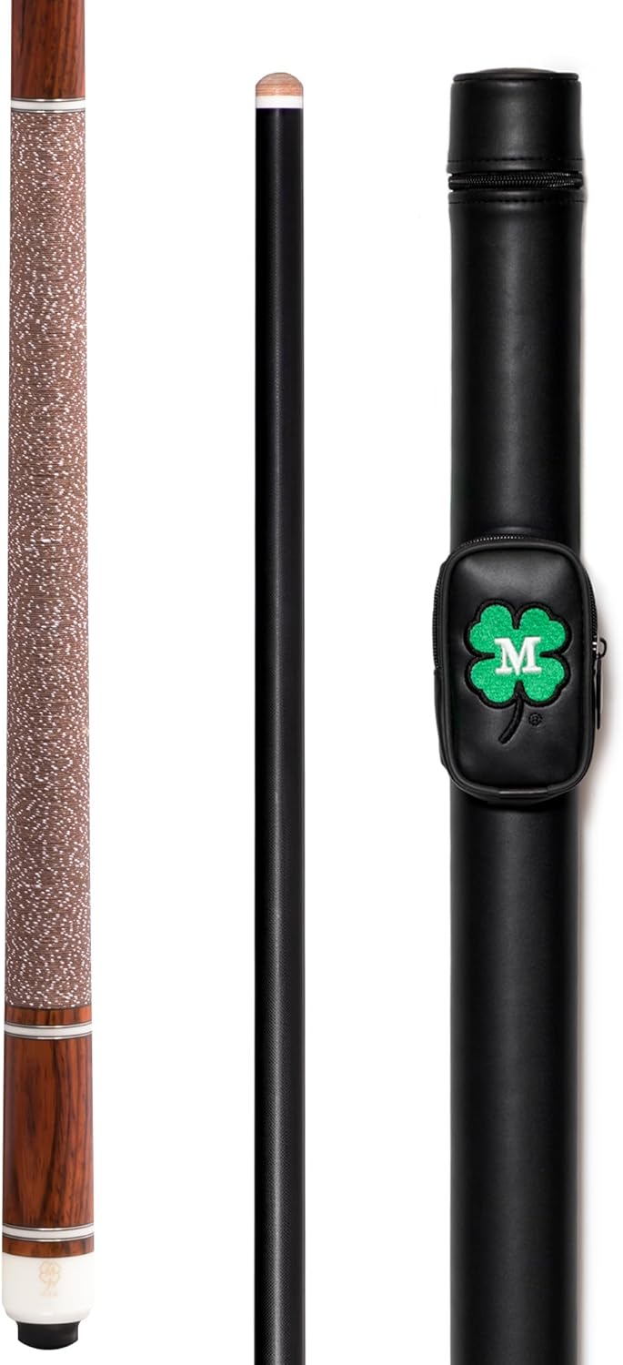 - Cue weight: ~19 oz (~540 gr). Included: 1x1 Hard Case w/Embroidered McDermott clover