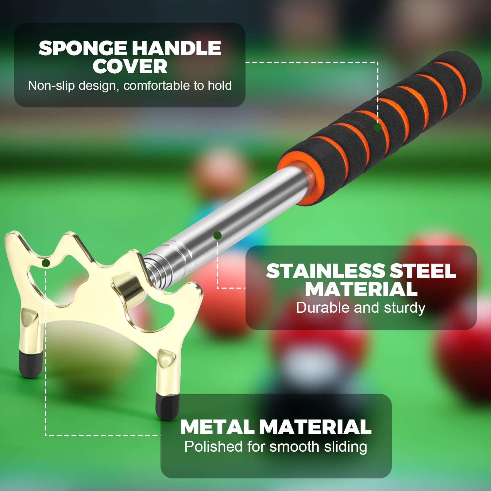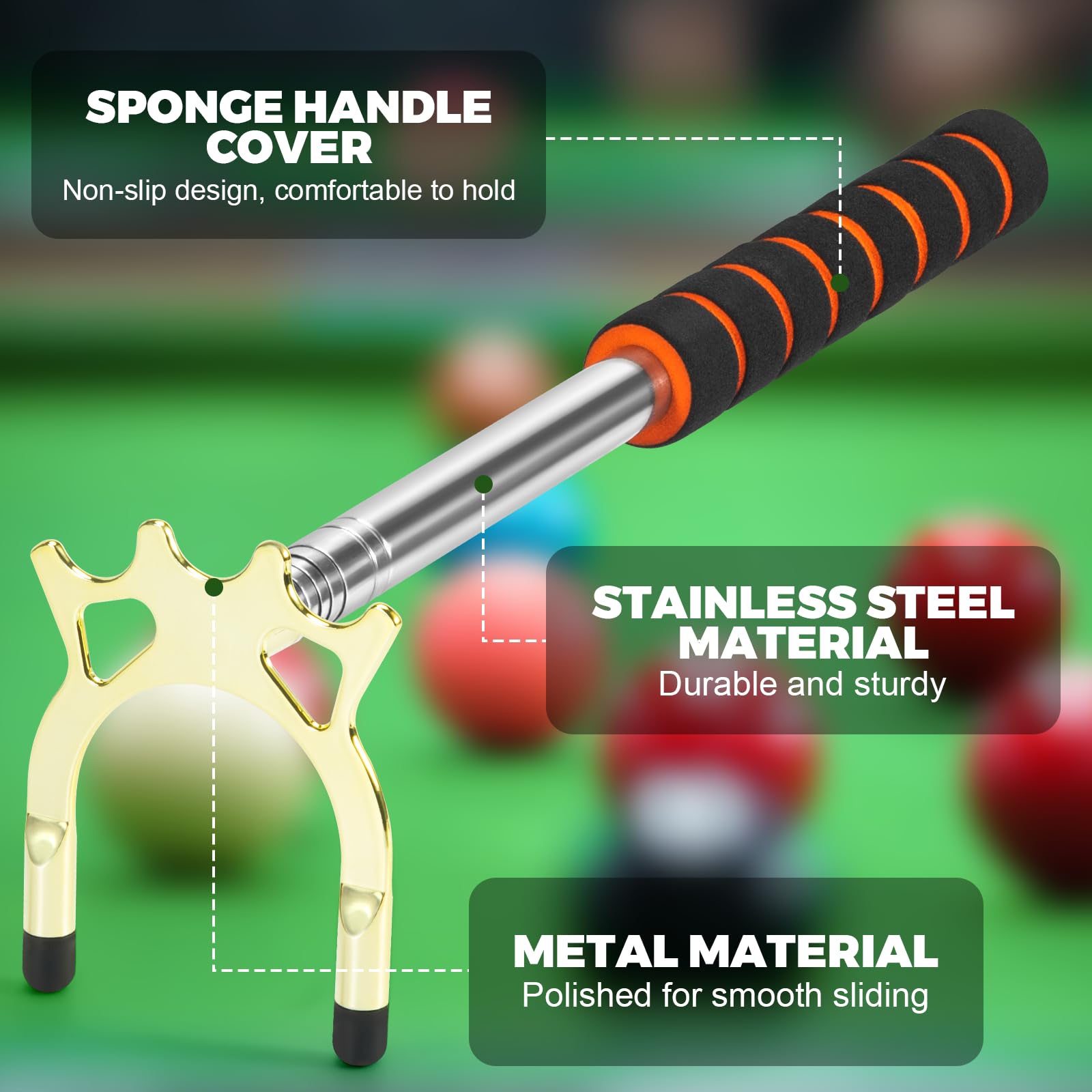- RELIABLE & DURABLE: Our bridge stick is made from high-quality stainless steel, ensuring it is robust, durable, and highly reliable. The handle features a high-density, elastic sponge cover made of sweat-absorbent material, providing a comfortable and non-slip grip, even during intense matches. This design ensures stable performance and helps you stand out in billiards competitions.
