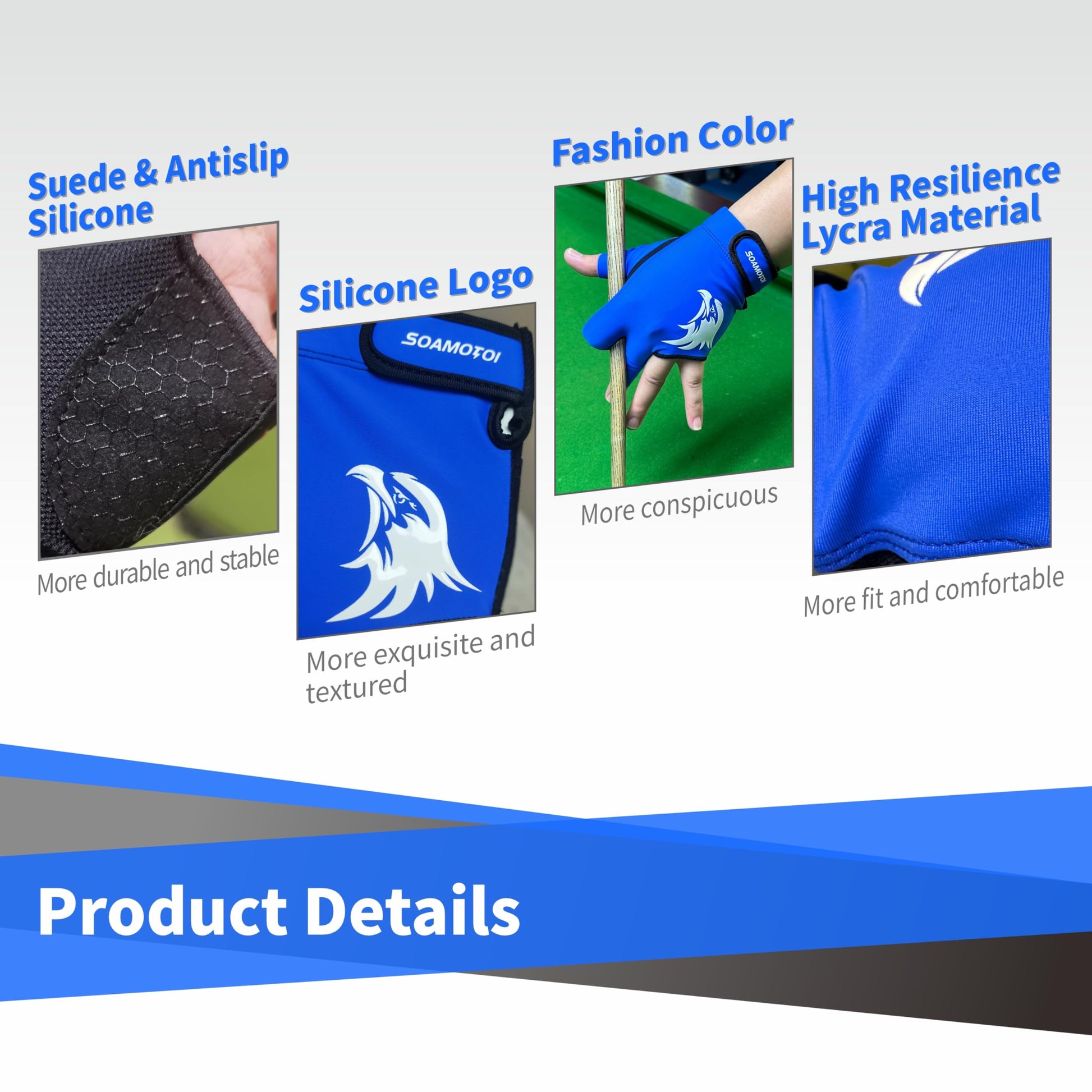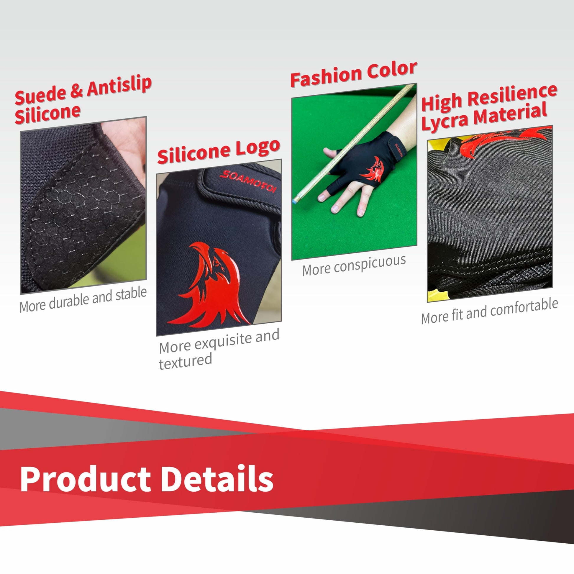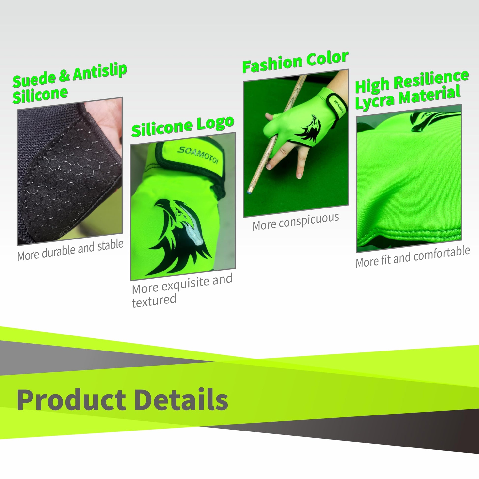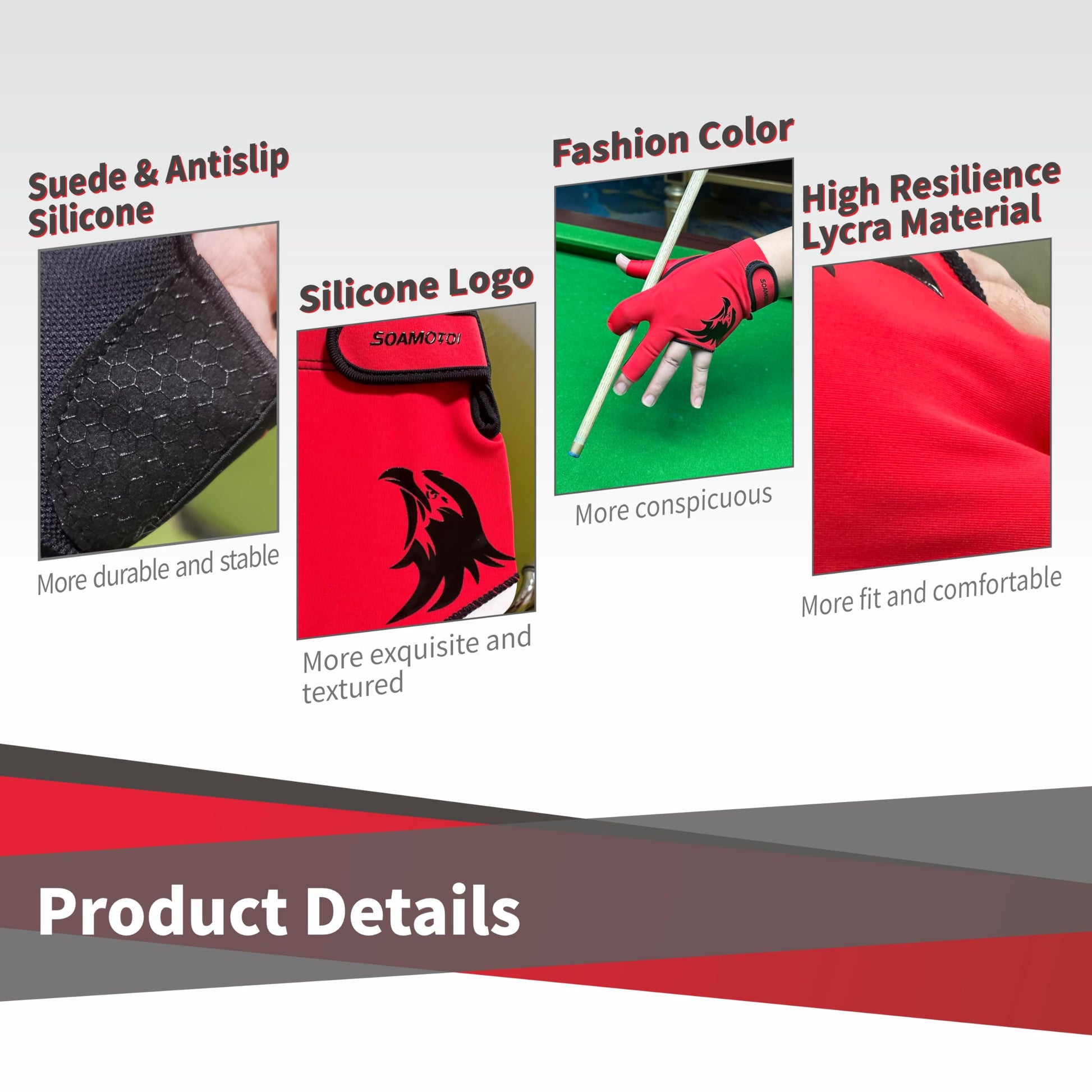 - 【Stylish Appearance】The pool cue glove with exquisite silicone logos along with fashion color matching, make you feel happier when you playing.