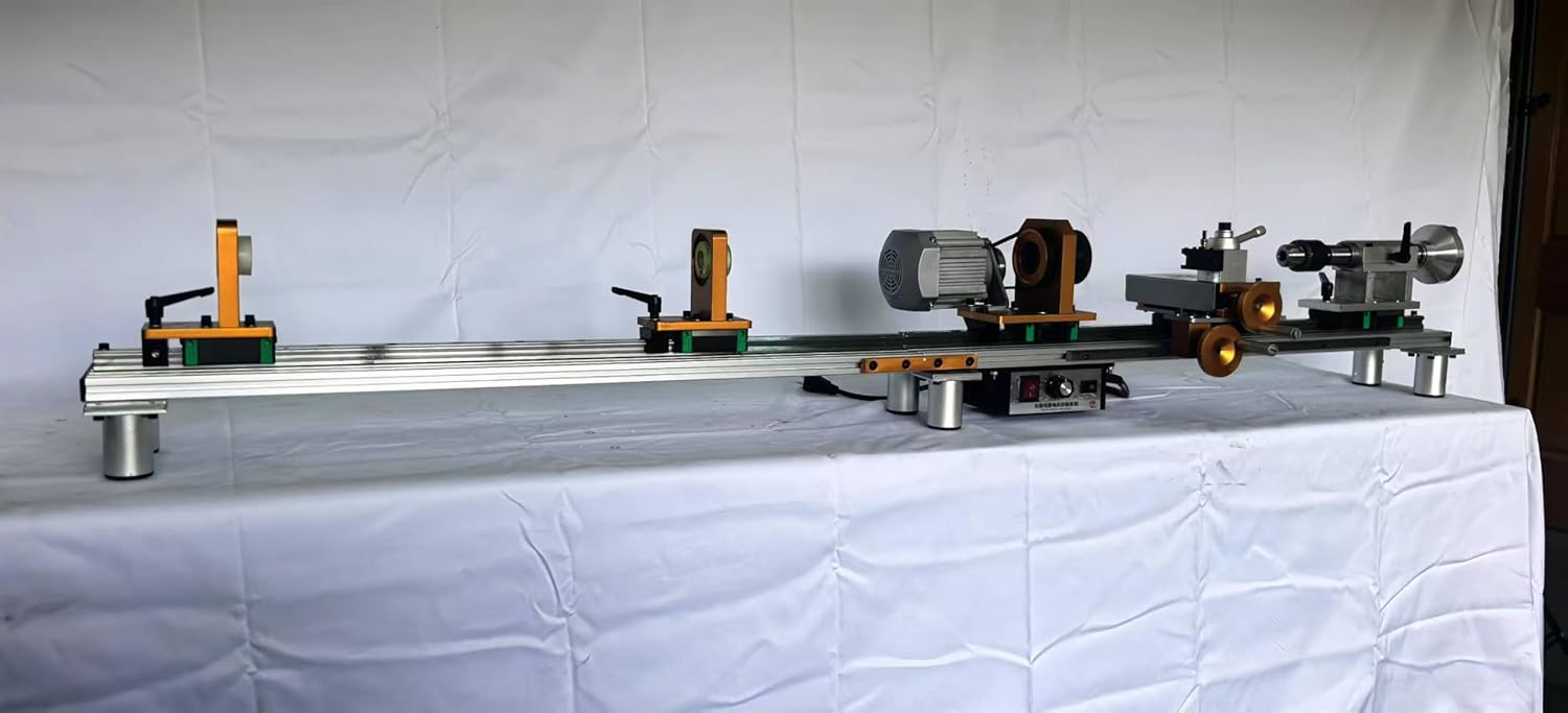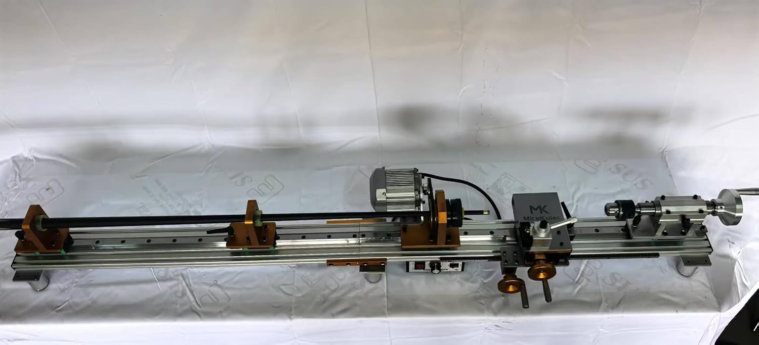 - [Spindle]: The spindle through hole of the pool cue lathe is 18mm, and it adopts a high-precision hand-tightened ER chuck with an accuracy of 0.001-0.002 inches. It adopts a double-tail bearing seat design with good stability and high precision. Each part can move left and right on the guide rail, and the operating space is large;