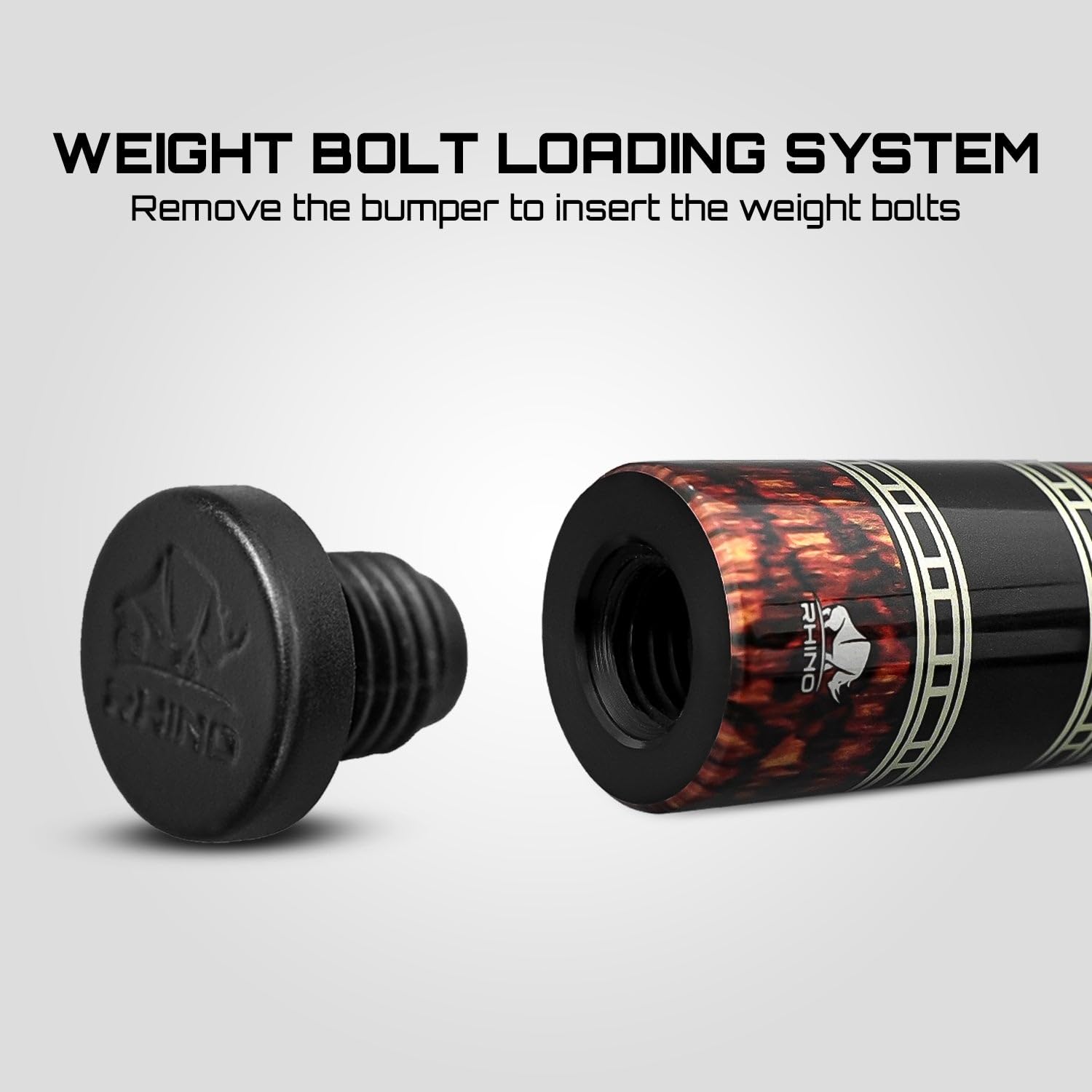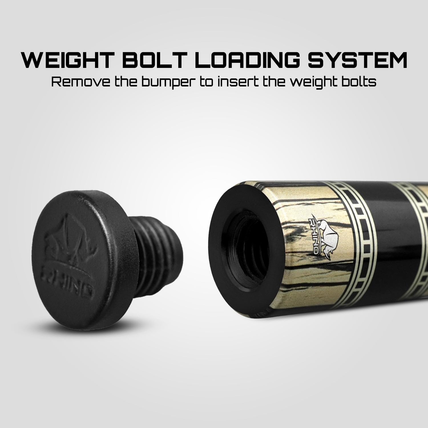 - The cue butt end features a weight bolt loading system, enabling individuals to adjust the cue's weight to suit their preferences *Weight Bolt Kits are sold separately