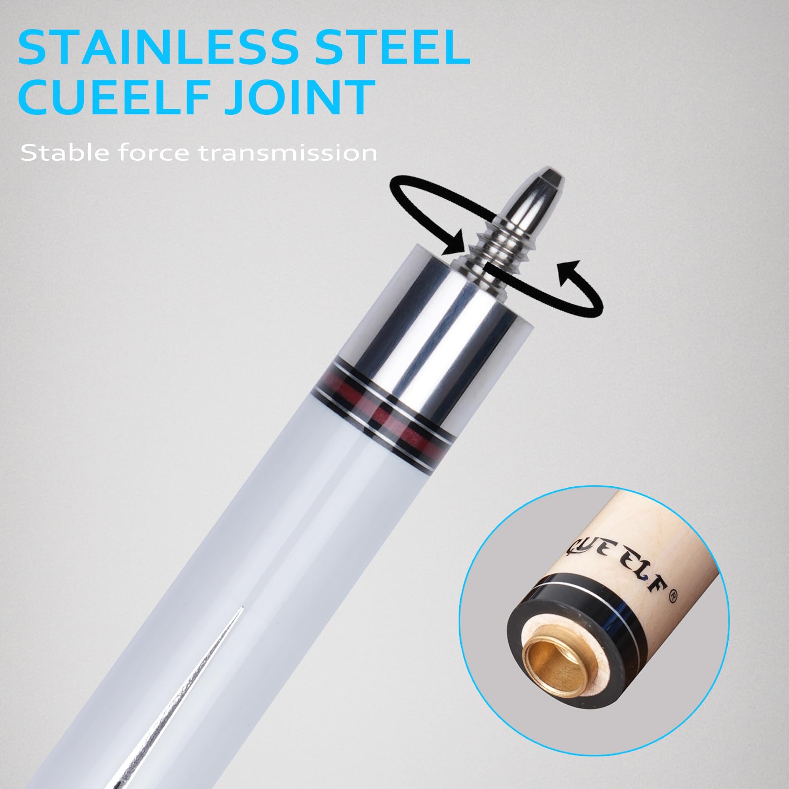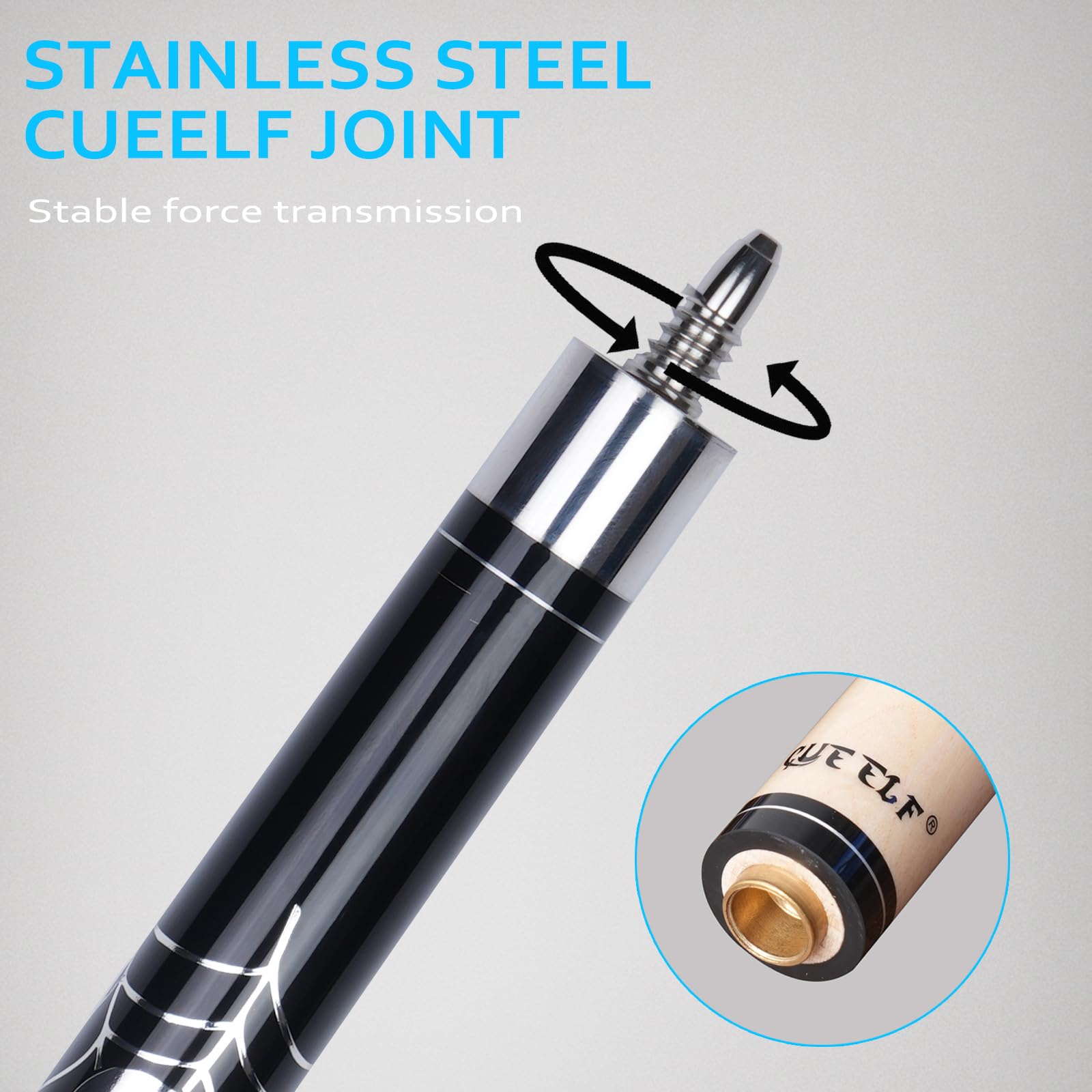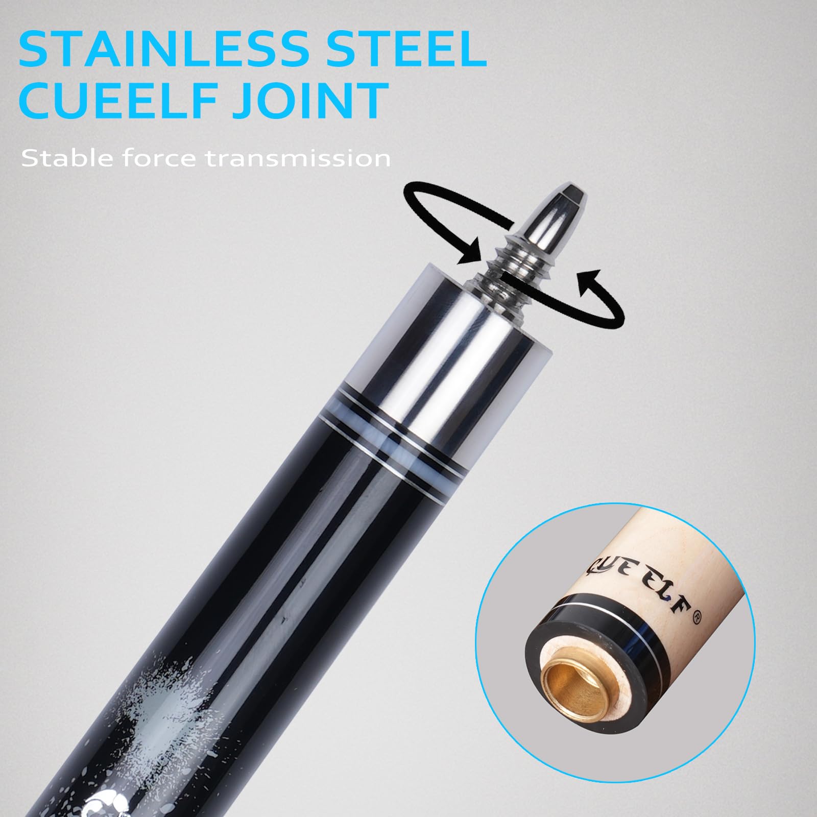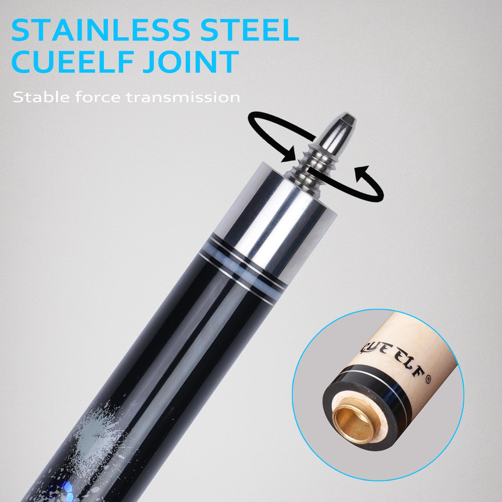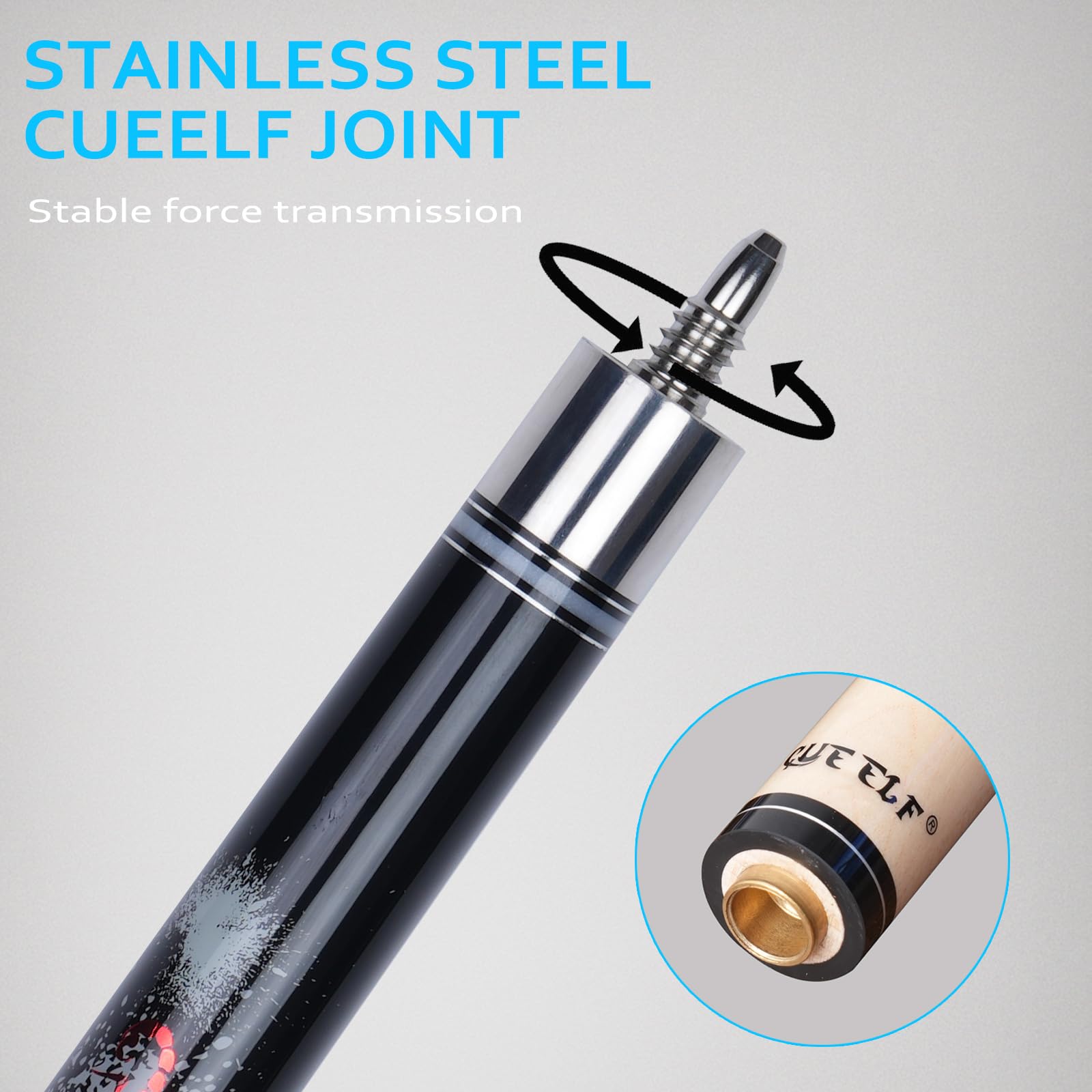- The billiard cue sticks are stainless steel CUEELF cue joint and not easy to bend. The cue connection is tighter, and the force transmission is more transparent. It is solid and equipped with a joint protector
