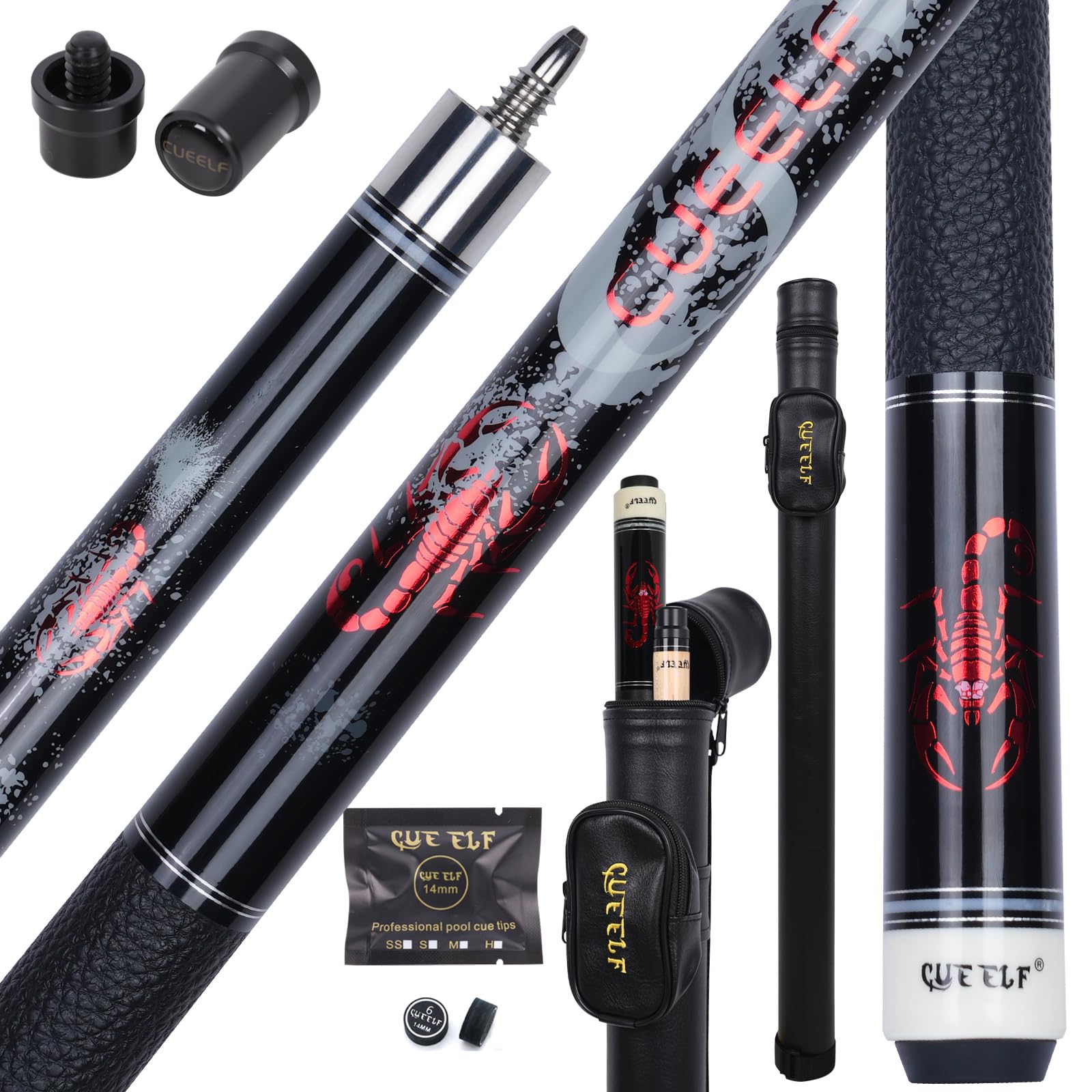 CUEELF Scorpion Pool Cue Stick 58 inch Canadian Maple Billiard Pool Stick with Low Deflection Leather Wrap Professional Cues Billiard Pool Cues Sticks 19.5-21 oz cue stick
