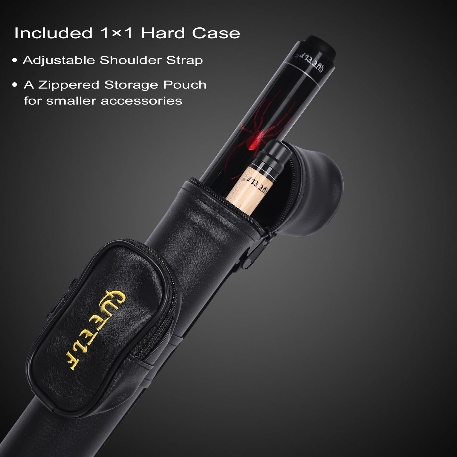 - CUEELF Spider Pool Cue Stick features 100% Canadian maple with silver overlaid decal butt paint for unique spider print,Black leather wrap,High-gloss super UV finish protects pool stick from fading& chipping