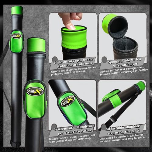 【All-in-One Premium Pool Set】Complete with 1 Professional Cue Stick, 1 Protective Case & 3 Essential Accessories. Perfect for Practice, Play, and Gifting. 【Specifications】Cue Length: 58 Inches (Tournament Standard); Tip: 13mm Multi-Layered Leather Tip for Enhanced Grip and Spin 【High-Performance Fiberglass Shaft】Experience superior control and accuracy. Our fiberglass shaft ensures efficient energy transfer, consistent elasticity, and rapid shape recovery. It offers outstanding durability, moisture resistance, and performs reliably in varying climates. 【Quick-Connect Joint】Easily assemble or disassemble your cue in seconds. Designed for convenience and portability without compromising stability. 【Premium Canadian Maple Butt】Crafted from A+++++ grade Canadian maple wood and finished with 10 layers of high-gloss varnish. This exquisite finish not only enhances the cue’s appearance but also provides robust protection against warping and moisture. 【Protective Rubber Bumper】 Shield your cue from floor impacts and reduce wear. An essential detail for preserving the longevity and aesthetics of your cue.